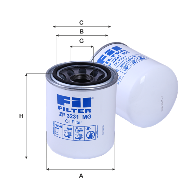 The efficiency of the element is shown using the Micron (µ) and Beta (β) ratings. The micron rating indicates the size of the particle being filtered and the beta rating the efficiency, calculated as 1/β.