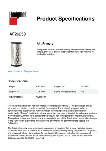 Fleetguard AF26250 Air, Primary