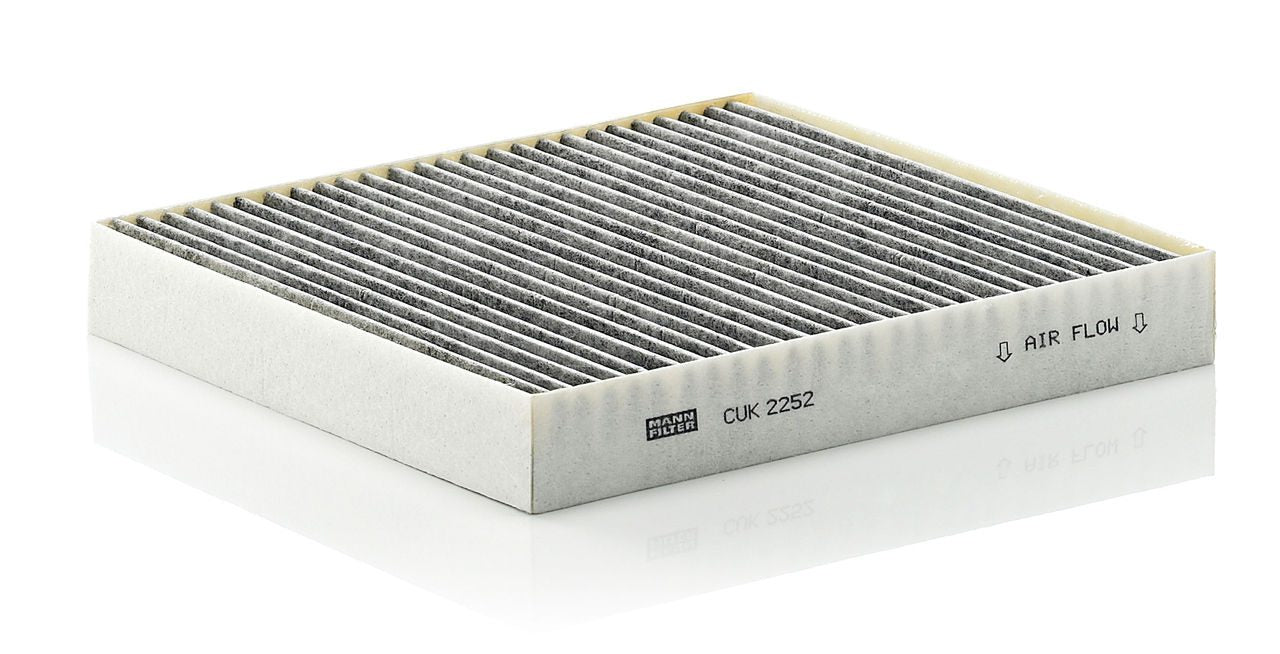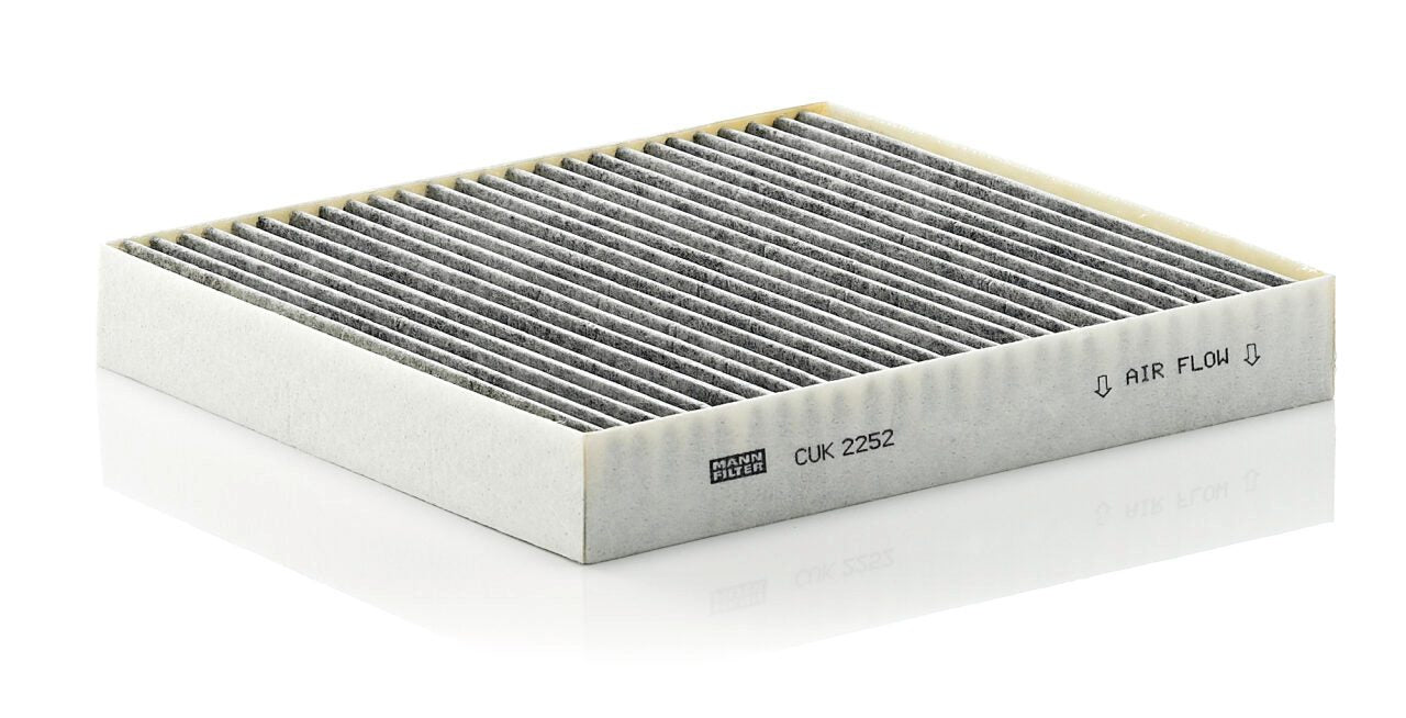 High-quality MANN-FILTER cabin filters with active carbon - nearly 100% protection from particles like pollen, diesel soot & tyre abrasion / Additional protection from harmful gases & unpleasant odour. The trated highly-effective activated carbon gives protection against harmful gases such as ozone, nitrogen oxide or sulphur dioxide and eliminates unpleasant odours during the entire service interval.