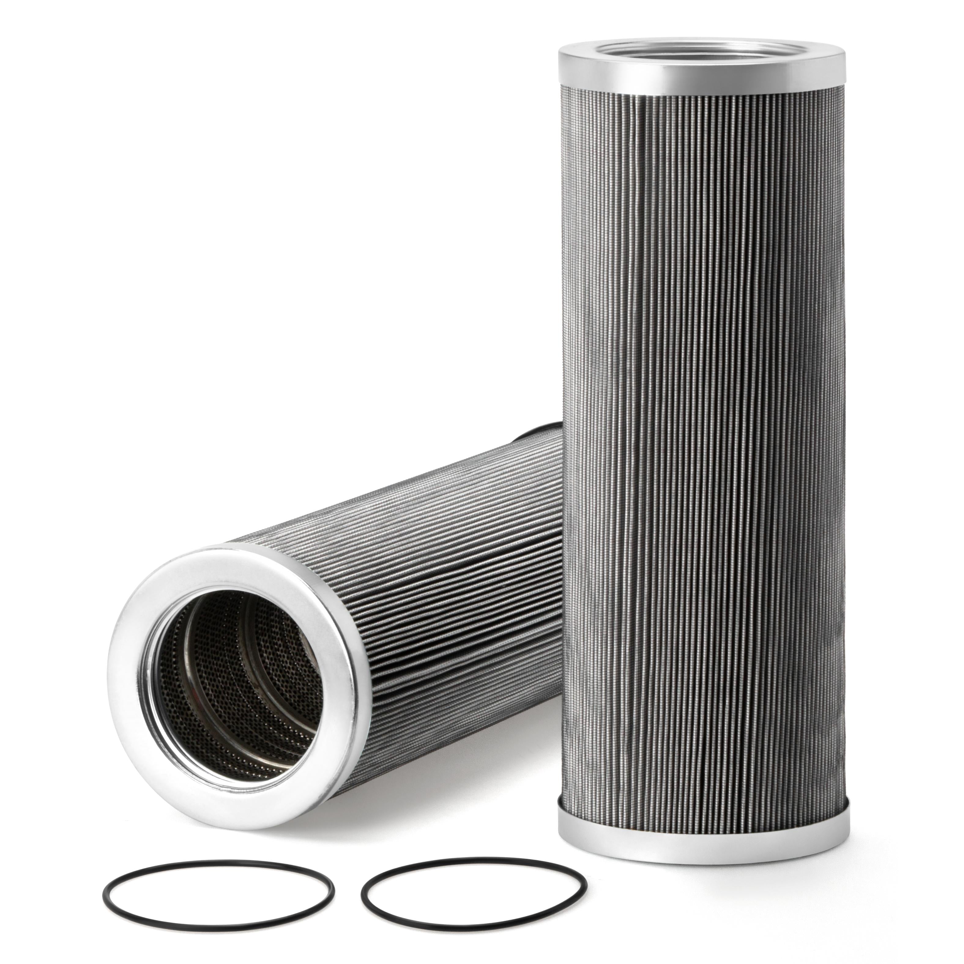 The efficiency of the element is shown using the Micron (µ) and Beta (β) ratings. The micron rating indicates the size of the particle being filtered and the beta rating the efficiency, calculated as 1/β.
