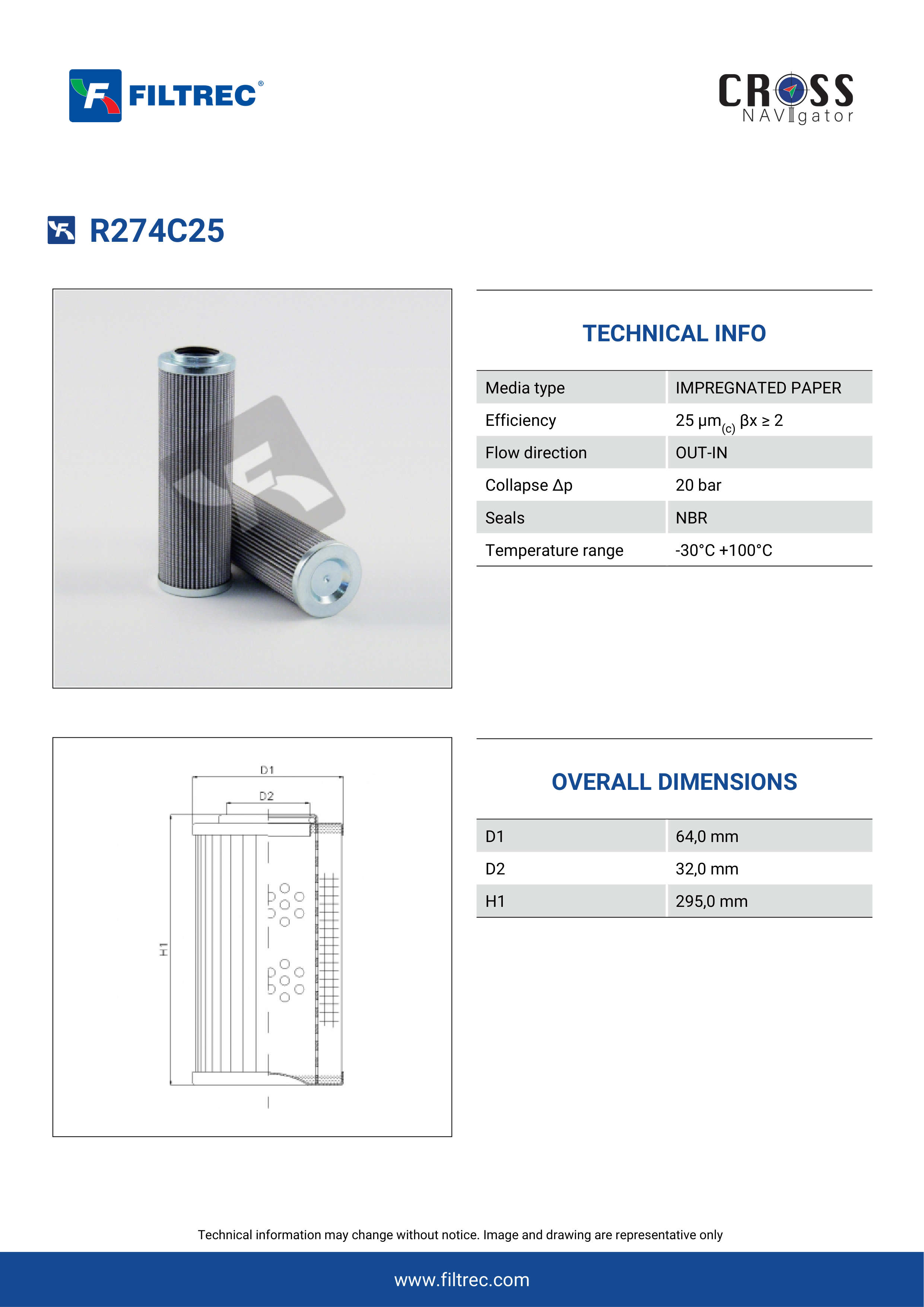 Engineered with their high performance media and a durable design, the R274C25 provides reliable and consistent performance over its lifespan, even in harsh operating environments. When you order from FilterFinder, you can trust that you are getting a reliable and high-quality replacement filter that will keep your system running smoothly.