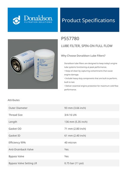Why Choose Donaldson Lube Filters?Donaldson lube filters are designed to keep today’s engine lube systems functioning at peak performance.